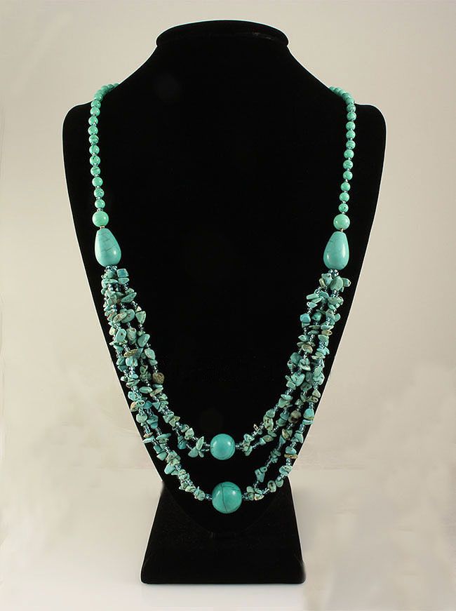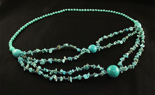 Gushing Sky Blue Turquoise 523.50ctw Beads Necklace **|**|** 32 Inches Long Trendy Style Crafted by Hand 3 Row Turquoise Beads in Myriad Shapes and Sizes. ; MSRP: $100