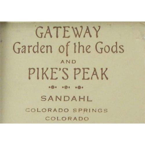 Gustaf Sandahl (1878-1928) Hand Colored Photograph, "Gateway, Garden of the Gods", 2 1/4" x 7 5/8", studio label attached
