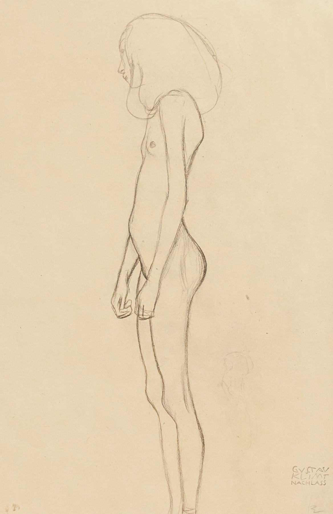 Lithograph on paper. Featuring sketch fo a nude figure. "GUSTAV KLIMT NACHLASS" printed in the bottom right corner. Attributed to Gustav Klimt (1862-1918, Austrian). Image size: 45 x 31 cm (17.7 x 12.25 in). Sheet size: 50 x 40 cm (20 x 15.75 in). Provenance: This lot carries limited provenance from a British estate