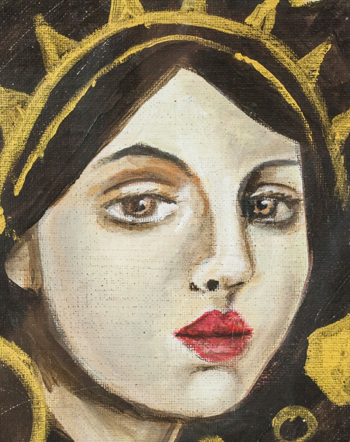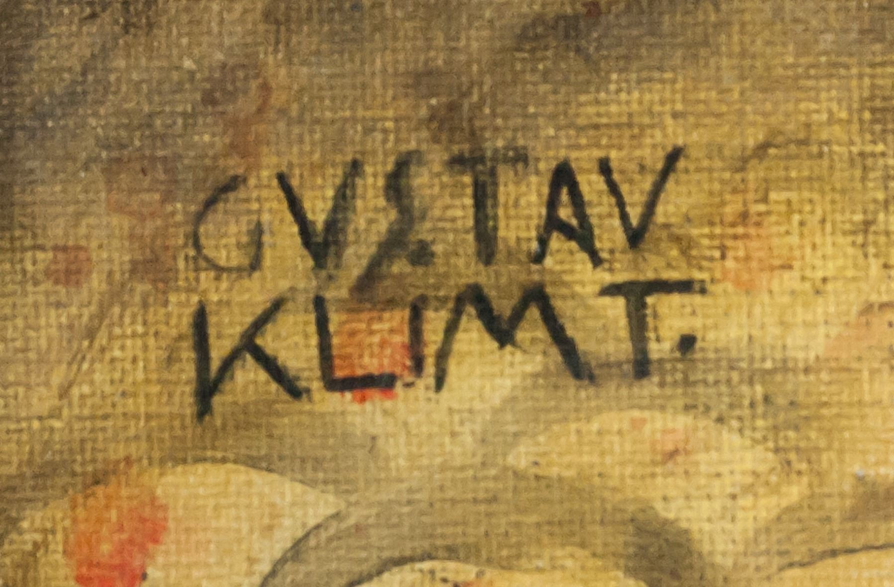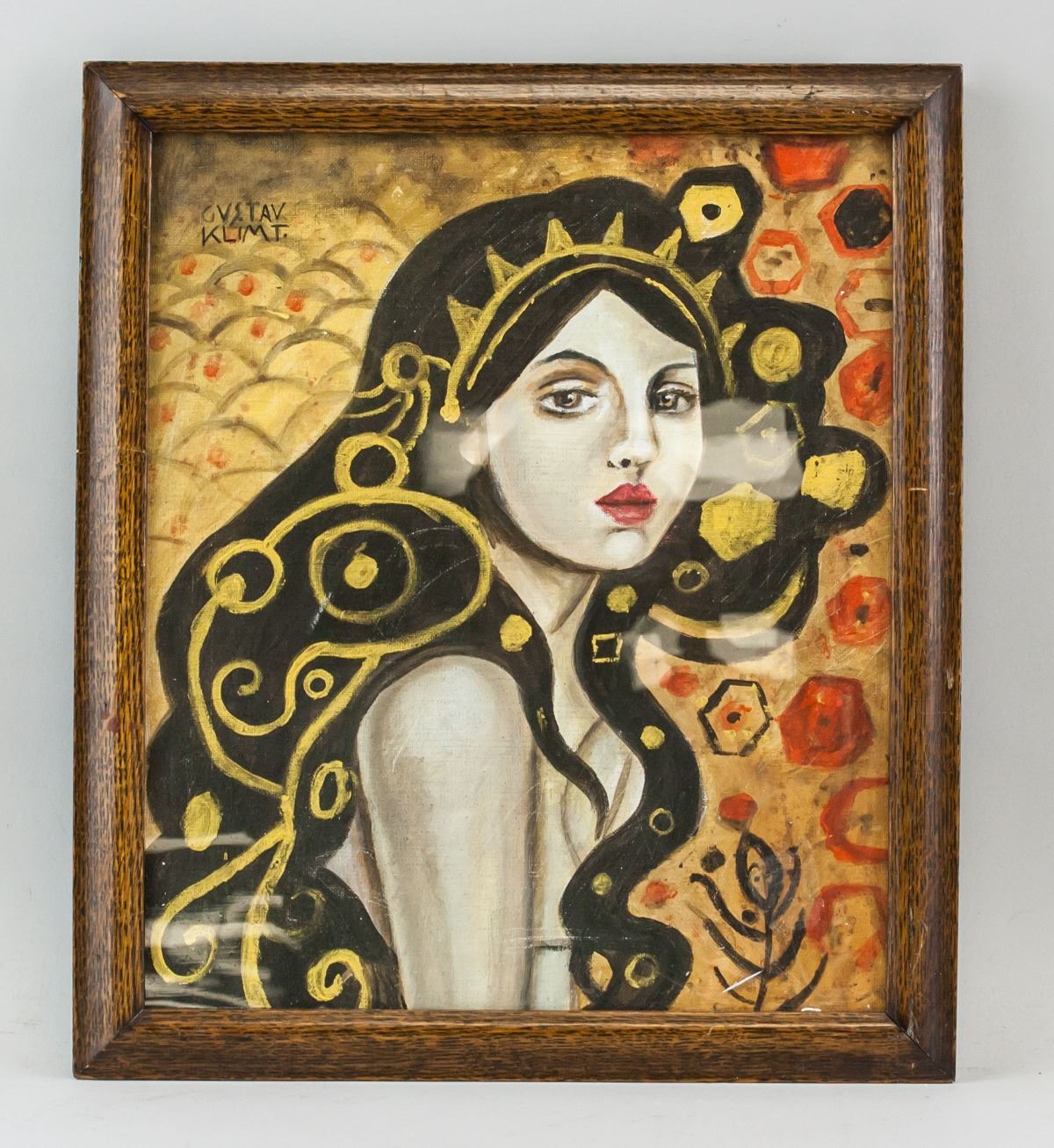 Oil on canvas, framed. Featuring a portrait of a woman. Signed GUSTAV KLIMT on the upper left corner. Stamped on verso. Red wax seal on verso. Attributed to Gustav Klimt (1862-1918, Austrian). 32 x 27 cm (12.5 x 10.5 inches). Framed size: 37 x 33 cm (14.5 x 12.75 inches). PROVENANCE: This lot carries limited provenance from a Southern Ontario estate