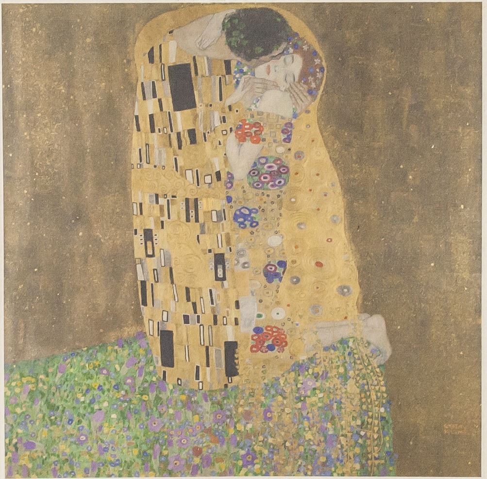 Linocut on paper. Original titled "The Kiss". Signed "GUSTAV KLIMT" beneath the bottom right corner of the image. Attributed to Gustav Klimt (1862-1918, Austrian). Plate size: 16 x 16 cm (6.5 x 6.5 inches). Paper size: 29 x 21.5 cm (11 x 8.5 inches). Provenance: This lot carries limited provenance from a Southern Ontario estate.