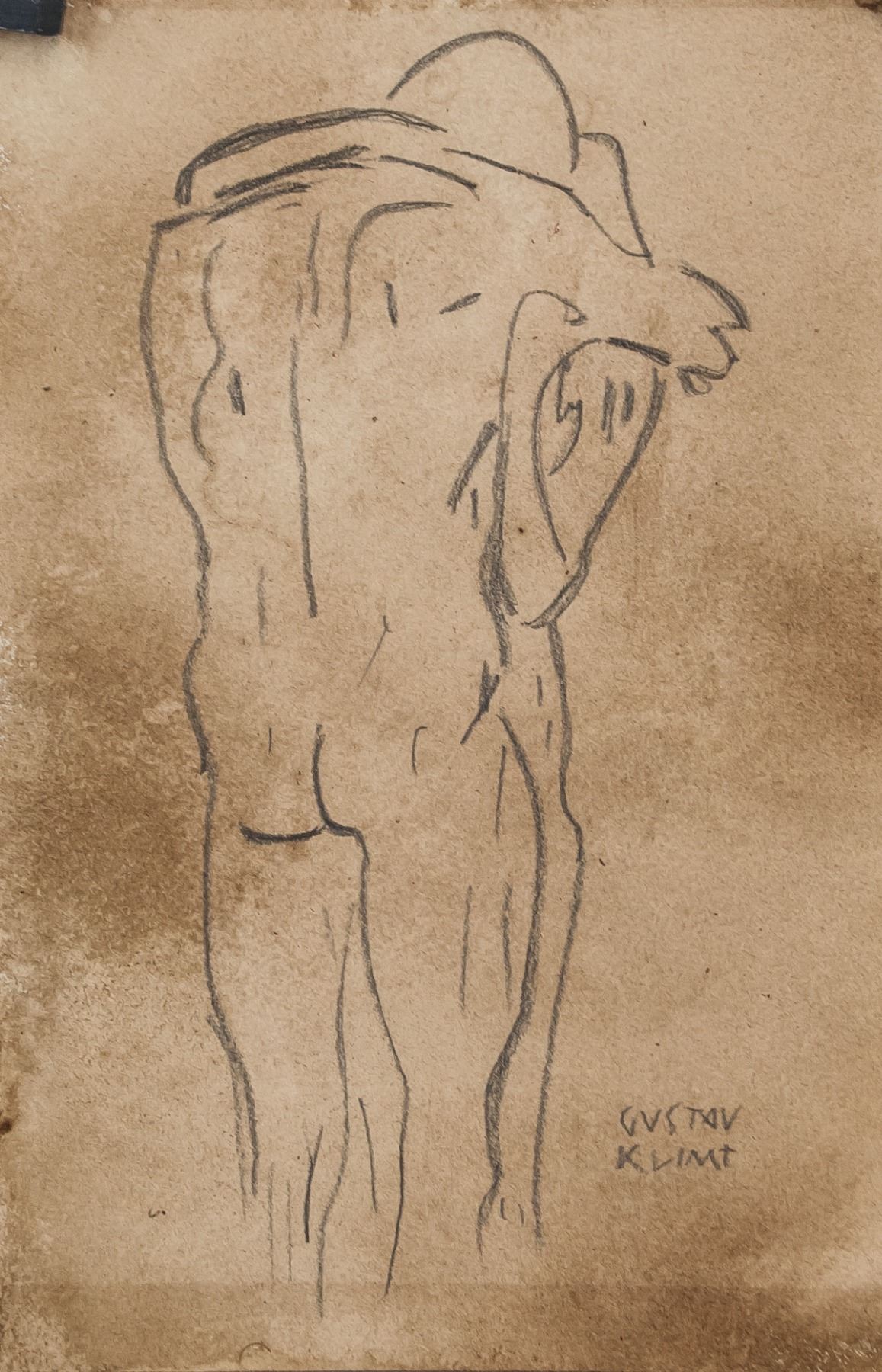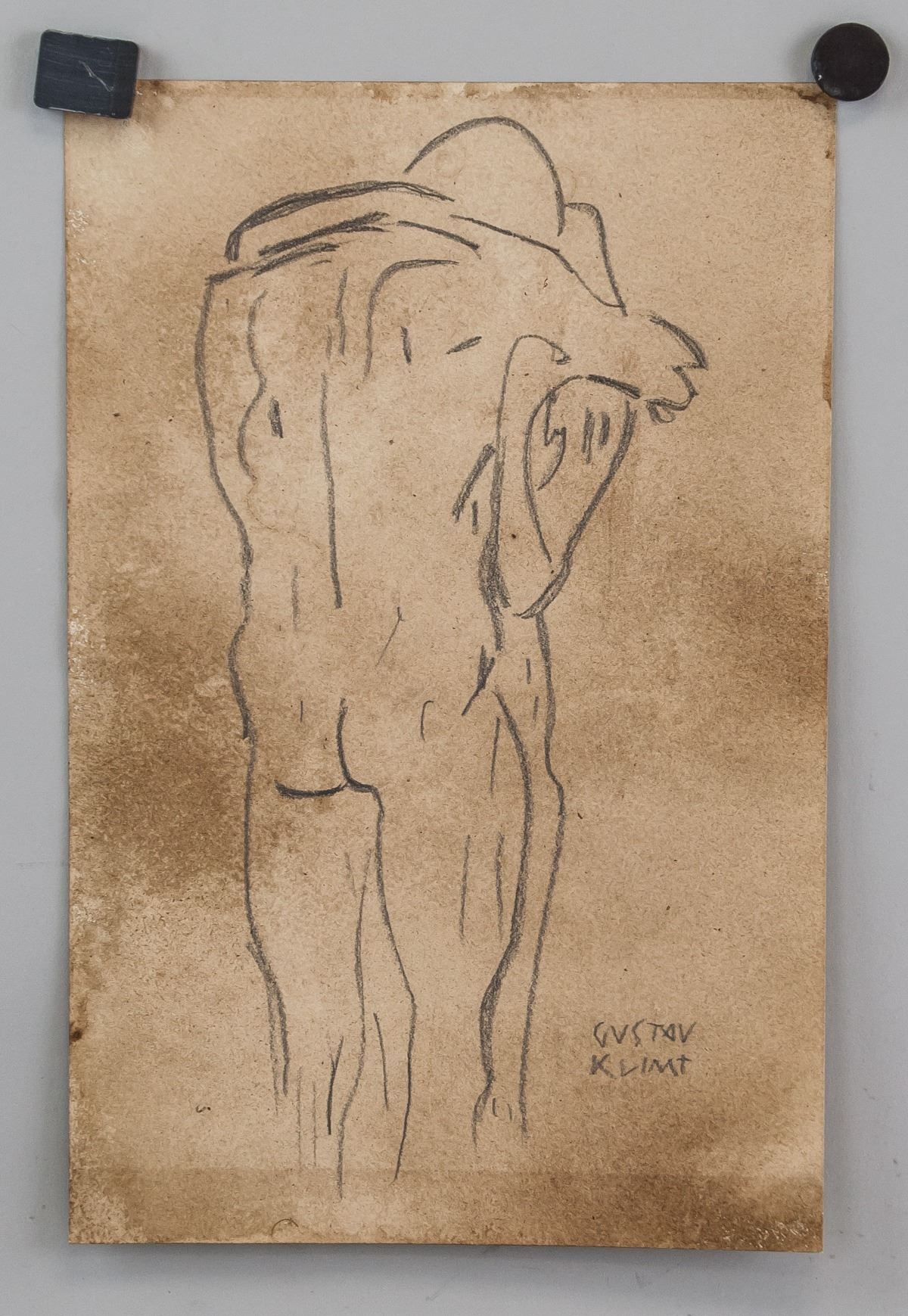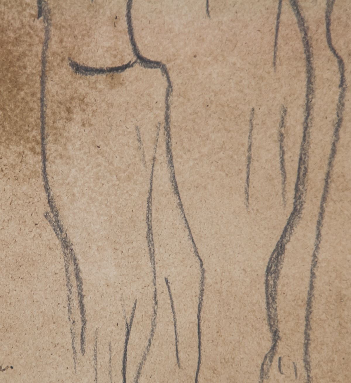 Pencil on paper. Featuring nude couple. Signed GUSTAV KLIMT on the lower right corner. Attributed to Gustav Klimt (1862-1918, Austrian). 29 x 19 cm (11.4 x 7.5 inches).