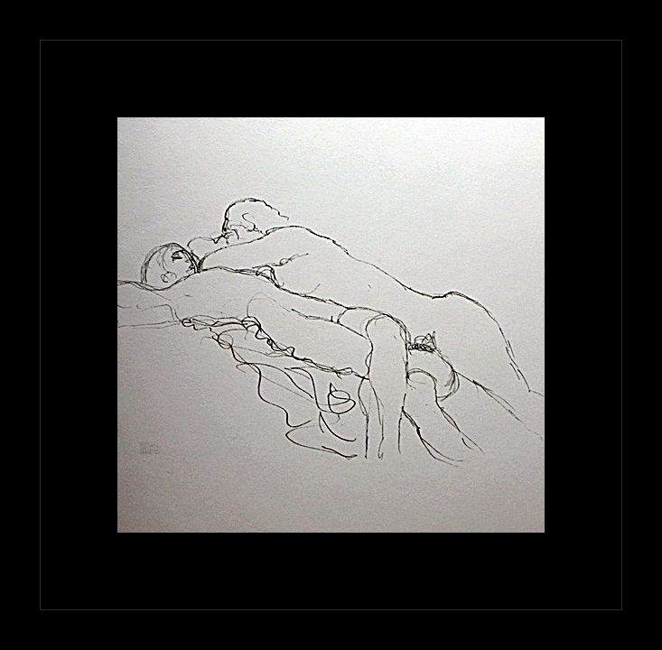 Erotic sketch lithograph by Gustav Klimt. Comes gallery framed black on black.