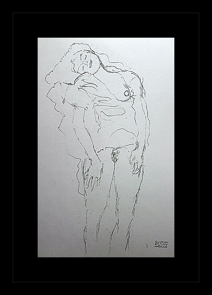 Erotic sketch lithograph by Gustav Klimt. Comes gallery framed black on black.