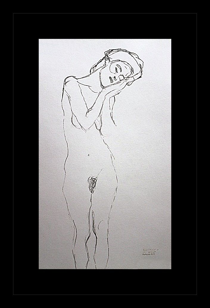 Erotic sketch lithograph by Gustav Klimt. Comes gallery framed black on black.