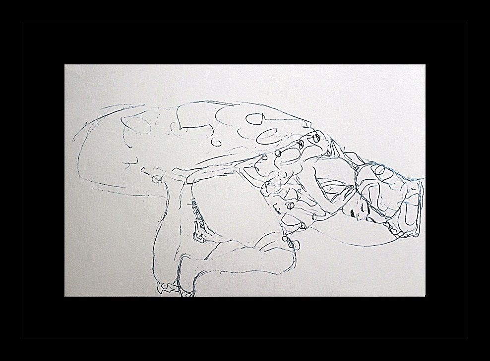 Erotic sketch lithograph by Gustav Klimt. Comes gallery framed black on black.