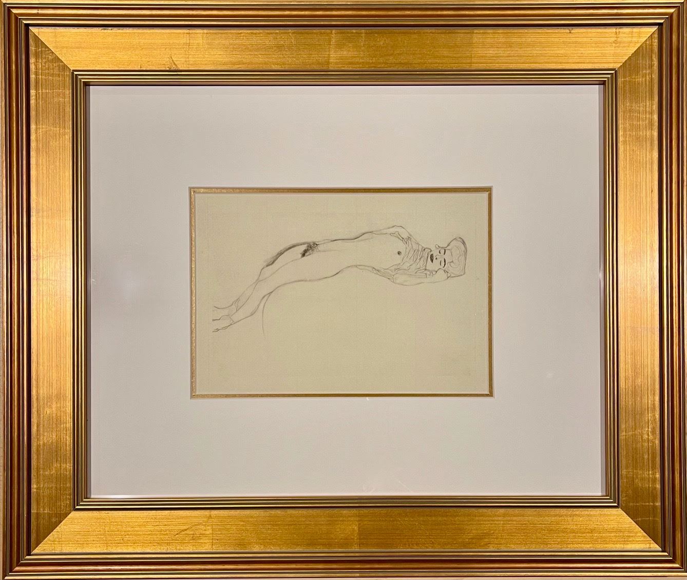 Gustav Klimt (1862-1918) "Lucian of Samosata," Original collotype, 14 1/2 x 11 1/2 inches (sheet), full margins. Leipzig: Julius Zeitler, 1907. Rare edition of 450 copies. Klimt's fluid, erotic illustrations were selected by him from a series of studies he had undertaken in preparation of his two celebrated "Water Serpents" paintings, 1904-1907 Hayn-Got. IV, 294. The frame is new, 21.5 x 25.5 inches.