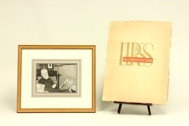 Photomontage. Issued 1933 with USSR Magazine. With later edition (1949) of same magazine. Gustav Klutsis, Soviet Union (1895-1938). Noted Russian Constructivist photographer. Approx. 5.5" x 7.5" sight, 12.5" x 14.5" framed.