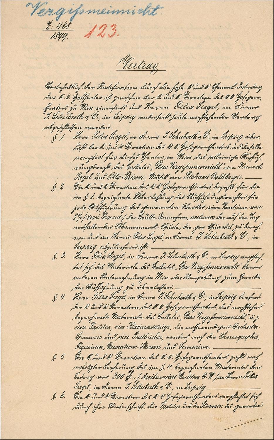 Since his days as a student at the University of Vienna, Mahler’s professional goal had been The Court Opera, where he was finally appointed director in 1897. His grandiose vision for the Opera was one that was virtually unobtainable. He saw each production as a blend of music, acting, and staging in the Wagnerian sense, rivaling the finest festival performances at Bayreuth. Vergissmeinnicht was a one act ballet by Richard Goldberger, and premiered at the Court Opera in October of 1899. It was performed 48 times, until the end of Mahler's management at the Court Opera in 1907. An excellent example from Mahler’s most frenzied period while at the Court Opera.