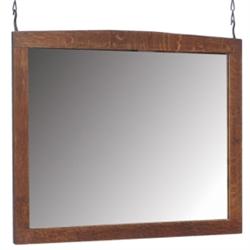 Gustav Stickley mirror, #910, original glass and frame with arched top, original hooks and chains, signed with paper label, original finish, 28” w x 23” h, excellent condition