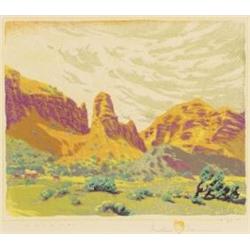 Gustave Baumann woodblock print, “Malapai”, pencil signed and numbered 27/125, 11”w x 9.5”h, framed, excellent condition