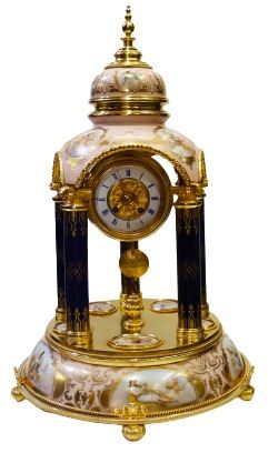 Extremely rare monumental sized, Gustave Becker Viennese porcelain clock. All original gold over silver in perfect museum condition. Circa 1870.