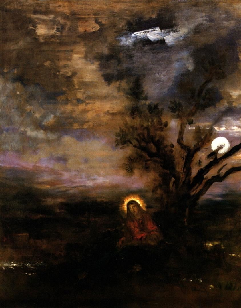 Artist: Gustave Moreau - Title: Christ in the Garden of Olives - Medium: Fine Art Giclee on Canvas - Image Size: Approximately 20 inches x 15.75 inches - Unframed on Unstretched Canvas - Biography:Gustave Moreau (c. 6 April 1826 - 18 April 1898) was a major figure in the French Symbolist movement, whose main emphasis was the illustration of biblical and mythological figures. Moreau's paintings appealed to the imaginations of some Symbolist writers and artists. He is recognized for his works that are influenced by the Italian Renaissance and exoticism. Many of his works are on display at the Musee Gustave Moreau, a museum in Paris dedicated to his works.