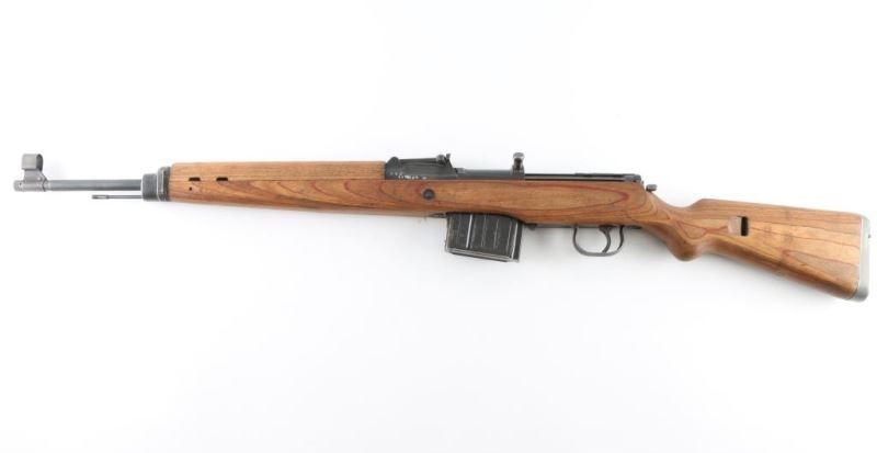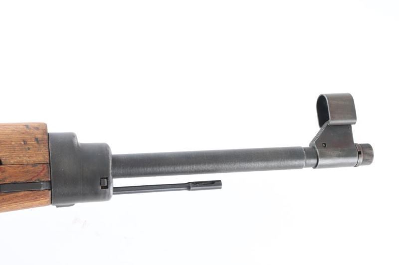 Rifle. Semi-Automatic. German WW2 military issued rifle. 10-rd detachable box magazine. Gas-operated short-stroke piston, flapper locking. 21.5" barrel. Produced 1943-45 with a total of 402,713 made. Threaded muzzle with removable nut for blank adapter. Serrated ramp front blade and tangent rear sights. Rough machined receiver, and bolt carrier. Serrated bolt hold open lever to the right of the charging handle locks/releases the bolt. Left receiver stamped "G.43 "bcd" Eagle proof. Small waffenamt on top of receiver appears to be Eagle/WaAA44. Serial number matched on receiver, bolt carrier, and stock. Stampings highlighted in white. Two large waffenamts Eagle/749 stamped on stock, One small Eagle/waW320 behind triggerguard. Eagle/359 stamped on trigger. "V" in circle stamped on rear sight. Bore is very good with strong rifling, but dirty. Blued metal finish is very good with some minor scratches/edge wear. Blonde wood stock, handguard are very good with a few minor scratches/dings. Cupped steel buttplate is hinged for cleaning gear has some light pitting on the upper portion. Cleaning rod present. Action is crisp/tight. One blue 10-rd magazine marked "aye" (Bueromaschinenwerke, Erfurt)) "G43" Waffenamt Eagle/WaAB43 Magazine is scratched with handling loss to the blue finish. Bolt stamped with Eagle, "9072". Lug electro-pencil marked "9072", firing pin stamped "9072". NRA Condition-Good. C& R Firearm.
