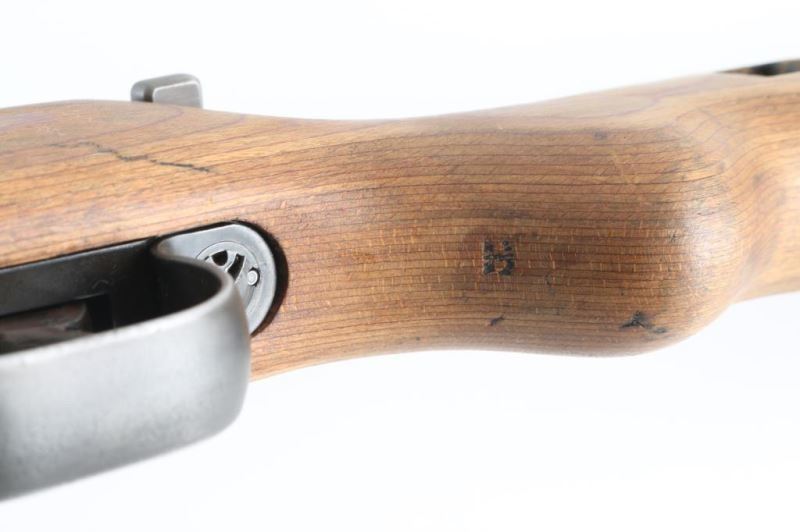 GOOD: Some minor replacement parts; metal smoothly rusted or lightly pitted in places, cleaned or re-blued; principal letters, numerals and design on metal legible; wood refinished, scratched bruised or minor cracks repaired; in good working order.