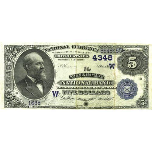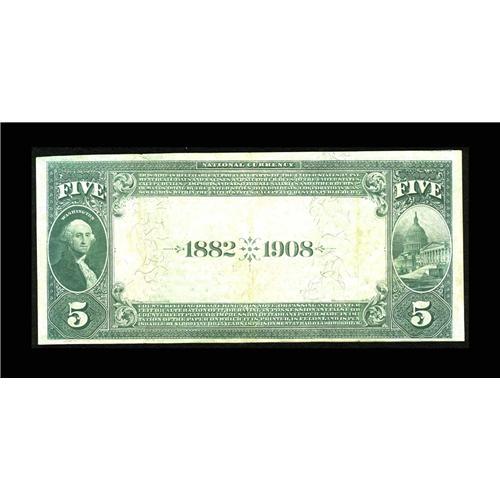 <B>Guthrie, OK</B></I> - $5 1882 Date Back Fr. 538 <B>The Guthrie NB</B></I> Ch. # (W)4348<BR>An interesting note from the first Territorial capital. It is the only $5 Date Back reported from here to date, and one of only two early notes from here that is not a Territorial issue. <B>Fine-Very Fine,</B></I> a significant item for the Oklahoma specialist.
