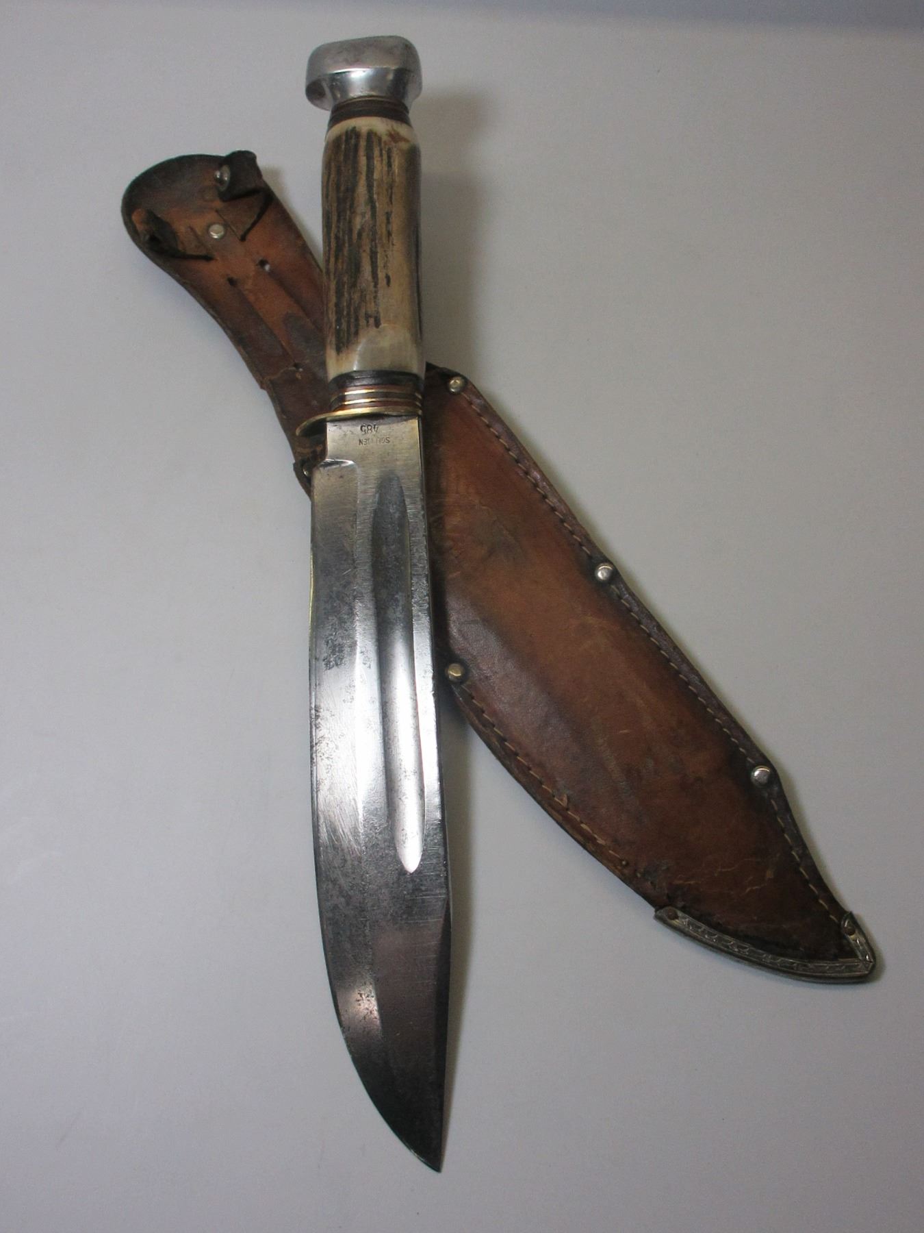 Gutmann Cutlery Model 485 Knife - Solingen Germany - 8" Blade - 5" Antler Handle - Sheath