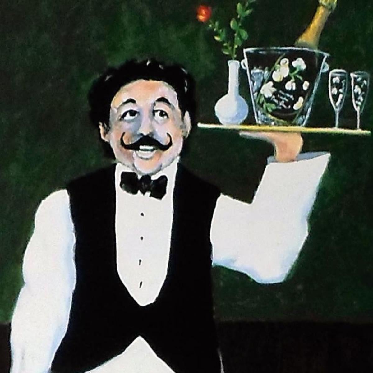 "Room Service" is a limited edition serigraph on paper by Guy Buffet. It is numbered, hand-signed by the artist, and comes with a Certificate of Authenticity. Measures approx. 19" x 25" (image). Reference #: 221609.