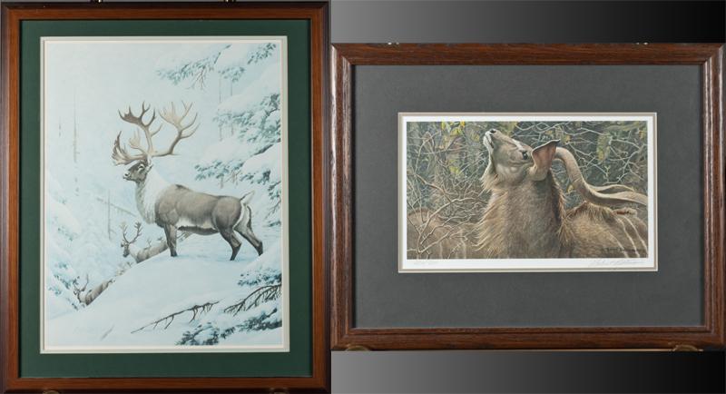 Guy Coheleach limited edition print of caribou in a winter landscape, pencil signed and monogramed LL, nicely framed and matted, 30.5" H x 26" W (including frame). Together with a Robert Bateman limited edition 284/950 titled "Kudu Bull," nicely framed and matted, 16.5" H x 21.5" W (including frame). A very nice lot.