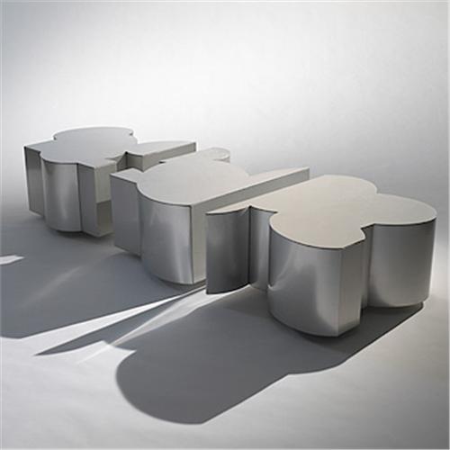Guy De Rougemont created artworks in the early 1970s that incorporated the motif of the ellipse. This unique table incorporates overlapping ellipses and rectilinear elements that are divided into three individual tables that can be used together or separately.