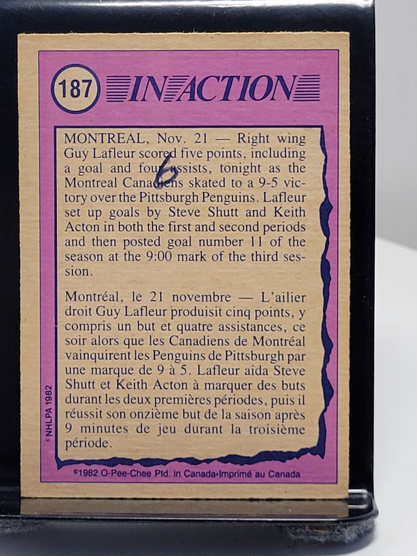 Guy LaFleur, 1982-83, In Action, 12th Card, #187 *****All Bids Are Subject To Owners Approval*****