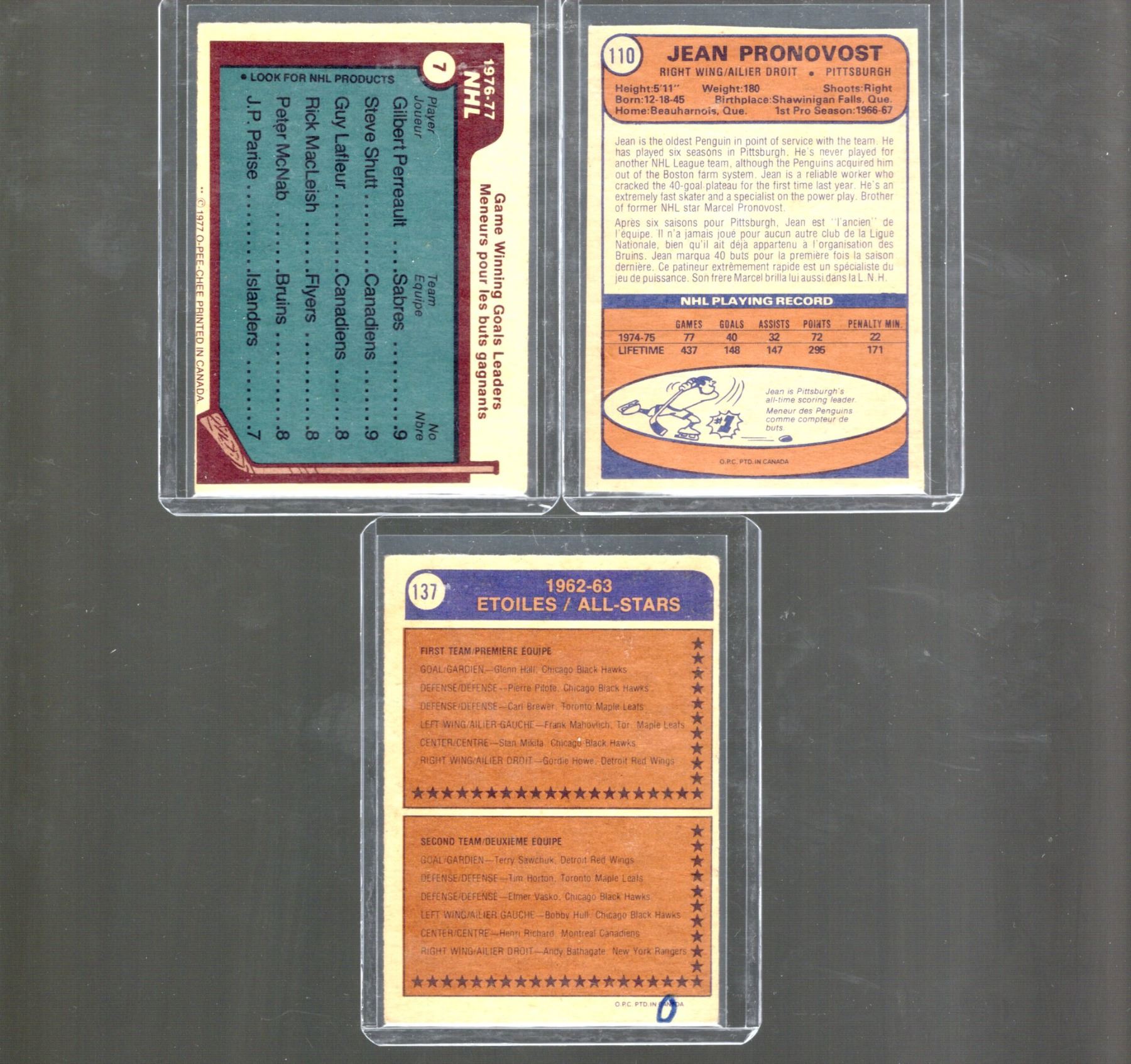 Guy Lafleur Gilbert Perreault GWG Leaders, Dave Burrows '73-'74 NHL West All Star, Jean Pronovost