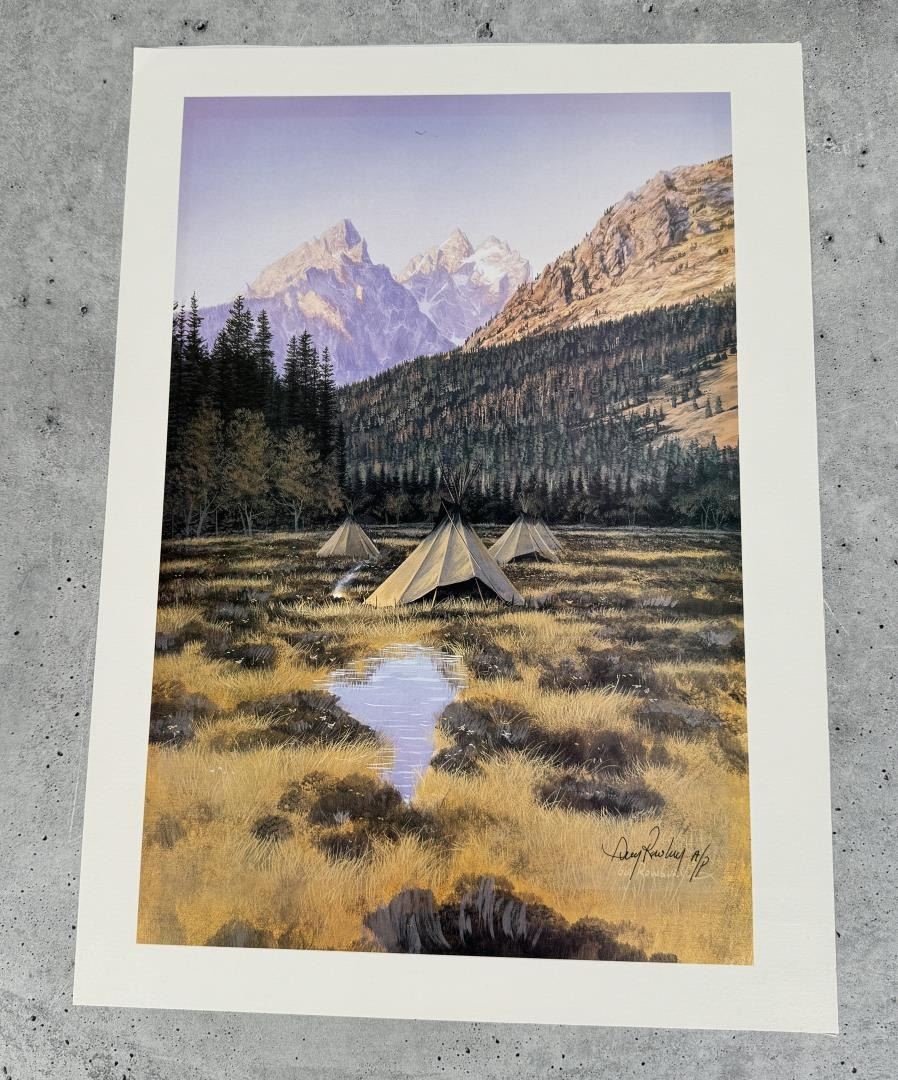 Signed. 17" by 12 1/4". Guy Rowbury (20th century) was active/lived in Montana, Idaho. Guy Rowbury is known for Western landscape. A resident of Ronan, Montana, landscape painter Guy Rowbury was born in Idaho Falls and learned to paint by watching his father and brother, both professional artists. In the 1970s, he was a professional bowler and then turned to painting full time. His special media are acrylic and watercolor. He has had a special two-man show with Nick Eggenhoffer.