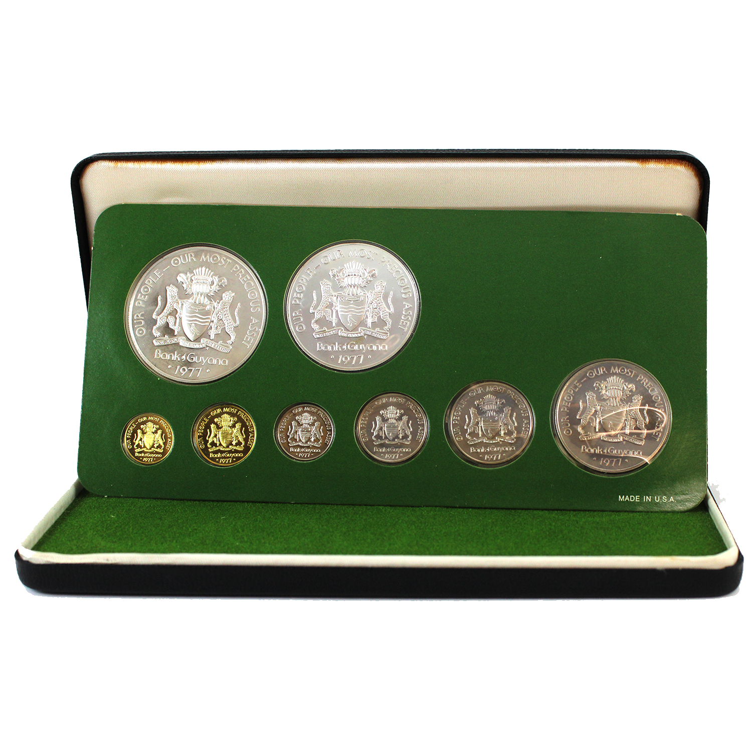 The $10 and $5 coin are silver and contain 1.88oz fine. Some coins toned, holder has some sticker residue & case has a few marks