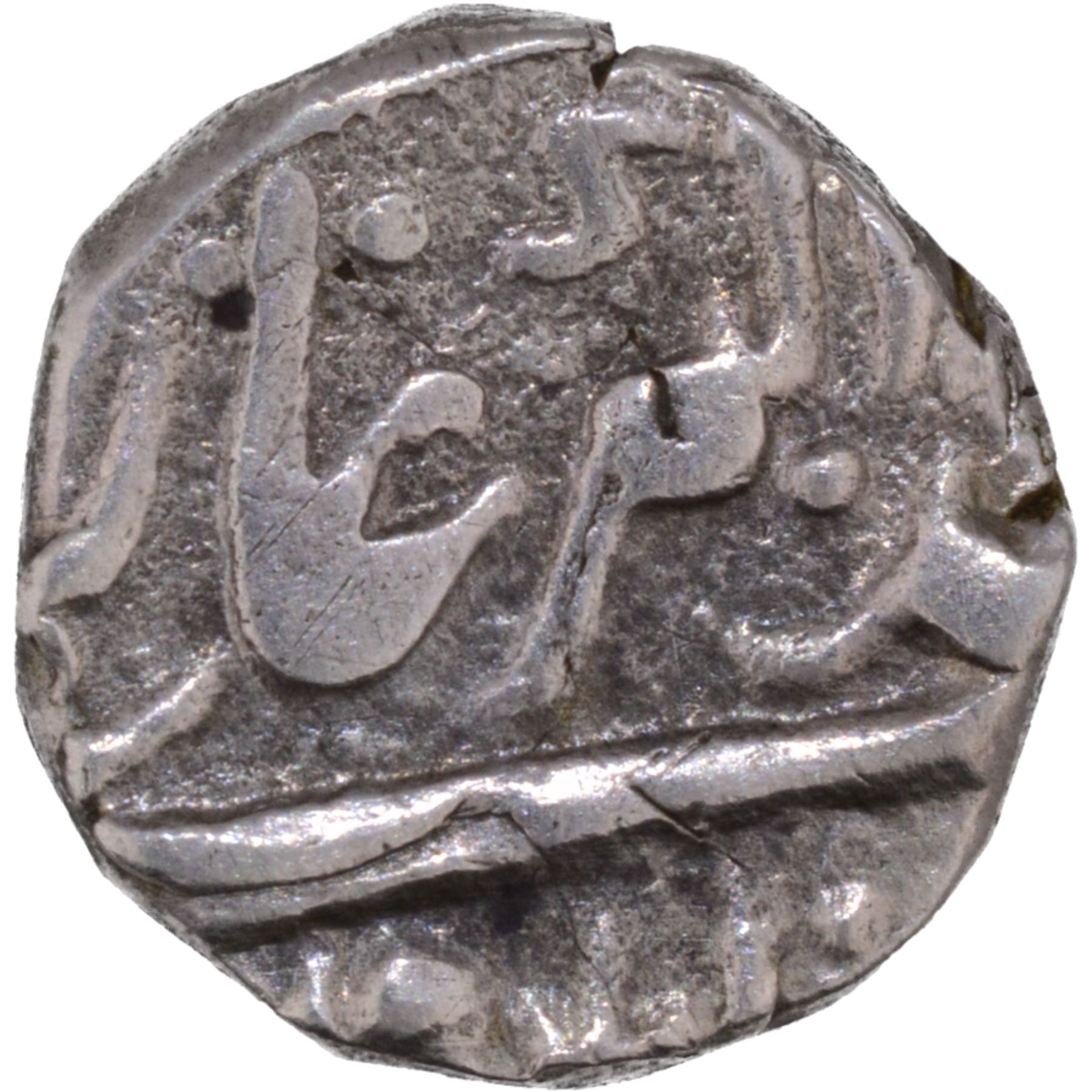 Gwalior State, Jankoji Rao (AH 1243-1259 / 1827-1843 AD), Basoda Mint, Silver ½ Rupee, In the name of Muhammad Akbar II, Obv: Persian legend "Sikka Mubarak saheb-e-qiran Badshah Ghazi", Rev: Persian legend "sana julus" & mint mark, 5.29g, 14.92mm, (KM # B19), no test mark, about very fine, Extremely Rare.