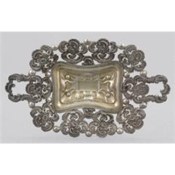 Bécs, 1847, antik ezüst, "PTR" (Thomas Regschek) mesterjegy, áttört díszítéssel, bordürdíszes aranyozott középpel, 408,8 g; 24,5*30 cm