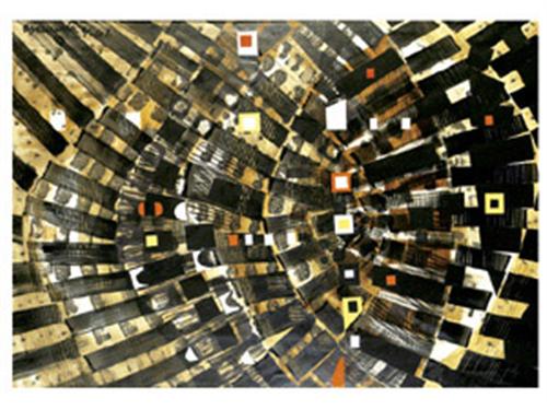 Oil, paper, collage. 60 x 86 cm. Signed upper left: Gyarmathy 966 I.