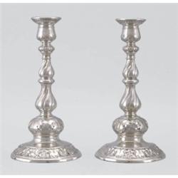 Bécs, 19. sz. utolsó harmada, ezüst, trébelt, kerek talpon bordázott hólyagdíszes szár, akantuszleveles díszítéssel, 665,2 g; m: 28 cm