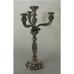 Antik ezüst 870 g, kerek bordázott talpon, balluszteres szár 3 karos barokk stílusú felsorésszel, Egyik szára restaurált. Jelzett Bécs, 1854. A.K feloldatlan mesterjellel, M.: 51 cm