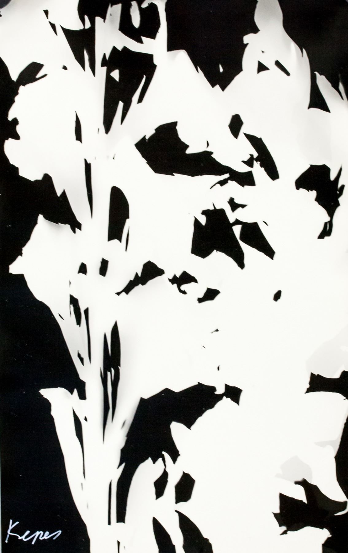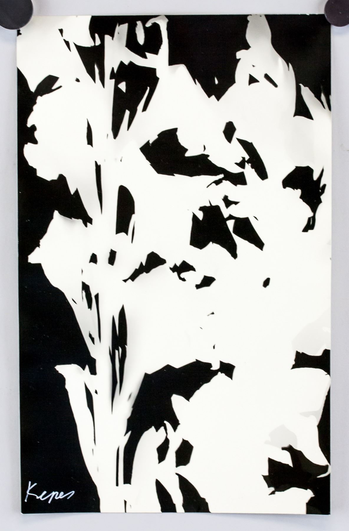Photogram on paper. Featuring abstract composition. Signed Kepes on the lower left corner. Attributed to Gyorgy Kepes (1906-2001, American-Hungarian). 19 x 30 cm (12 x 7.5 inches). PROVENANCE: This lot carries limited provenance from a Central European estate