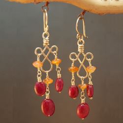 Metal: Gold Carnelian and ruby on hammered curled wire, 2" Available in either 14K gold-filled, rose gold-filled, or sterling silver. All jewelry is entirely handmade in our studio in New York.