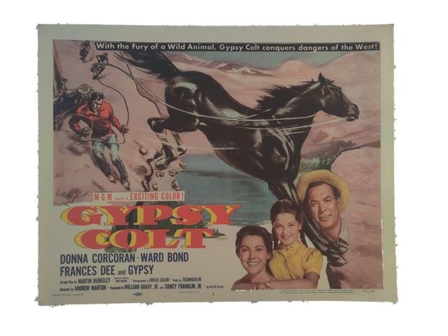 Gypsy Colt (Metro-Goldwyn-Mayer [MGM], 1954) lobby card. Drama, Western. Starring Donna Corcoran, Ward Bond, Frances Dee, Larry Keating, Lee Van Cleef, Robert Hyatt, Nacho Galindo, Rodolfo Hoyos Jr., Joe Dominguez, Joe Dominguez, Jester Hairston, Peggy Maley, Highland Dale, Joe Turkel. Directed by Andrew Marton. Light edge wear. Near Mint. (11"x14").