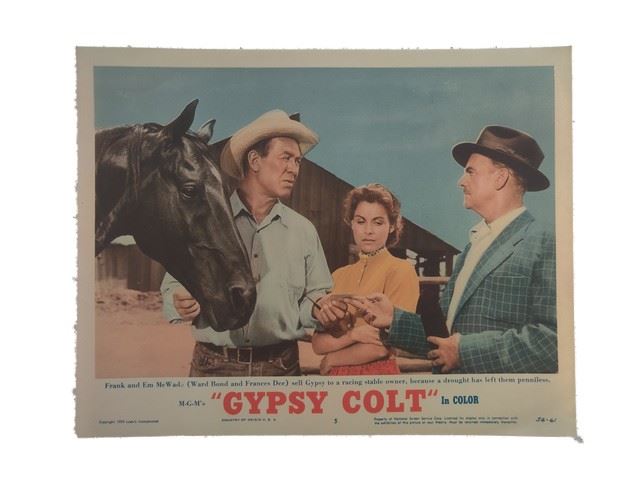 Gypsy Colt (Metro-Goldwyn-Mayer [MGM], 1954) lobby card. Drama, Western. Starring Donna Corcoran, Ward Bond, Frances Dee, Larry Keating, Lee Van Cleef, Robert Hyatt, Nacho Galindo, Rodolfo Hoyos Jr., Joe Dominguez, Joe Dominguez, Jester Hairston, Peggy Maley, Highland Dale, Joe Turkel. Directed by Andrew Marton. Very minor edge wear. Near Mint. (11"x14").