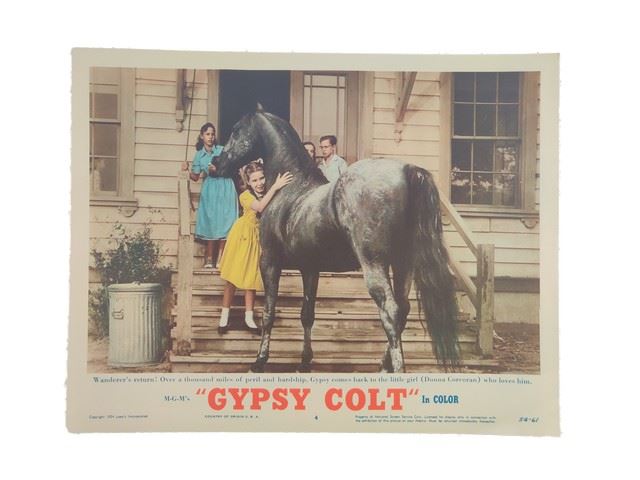 Gypsy Colt (Metro-Goldwyn-Mayer [MGM], 1954) lobby card. Drama, Western. Starring Donna Corcoran, Ward Bond, Frances Dee, Larry Keating, Lee Van Cleef, Robert Hyatt, Nacho Galindo, Rodolfo Hoyos Jr., Joe Dominguez, Joe Dominguez, Jester Hairston, Peggy Maley, Highland Dale, Joe Turkel. Directed by Andrew Marton. Light edge wear. Near Mint. (11"x14").