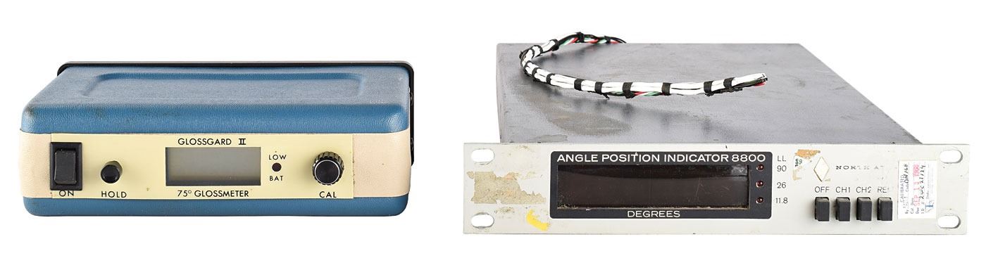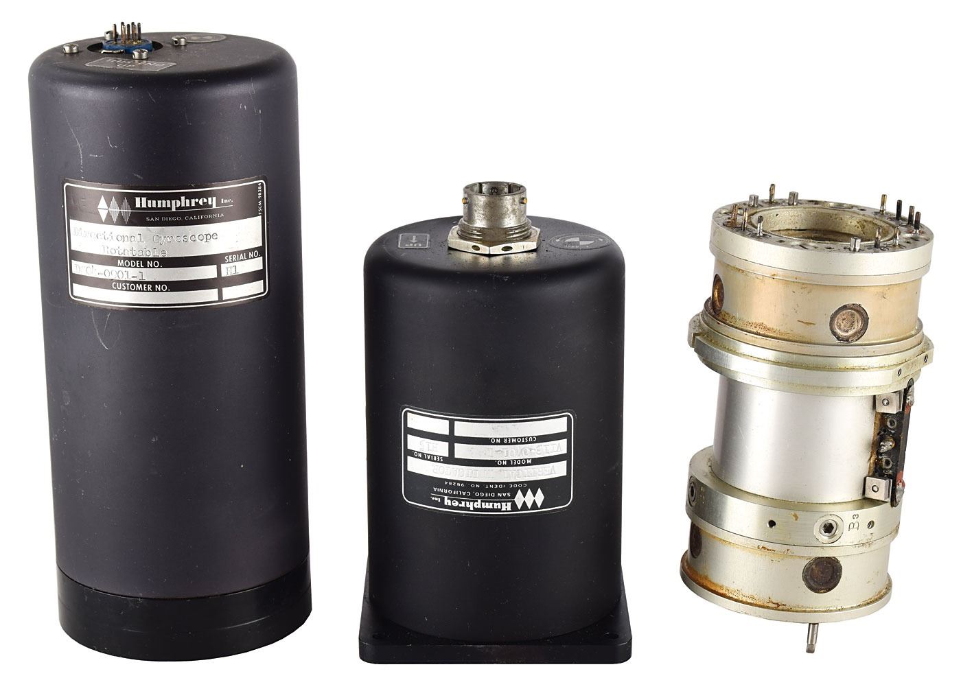 Collection of gyroscopes and related devices, including: a Singer Rate Integrating Gyroscope; a Humphrey Rotatable Directional Gyroscope; a Humphrey Vertical Indicator; an internal gyroscope component; two Vertical Gyros; a North Atlantic Industries Angle Position Indicator 8800; and a Gardner Instruments Glossgard II 75° Glossmeter. In overall very good to fine condition.