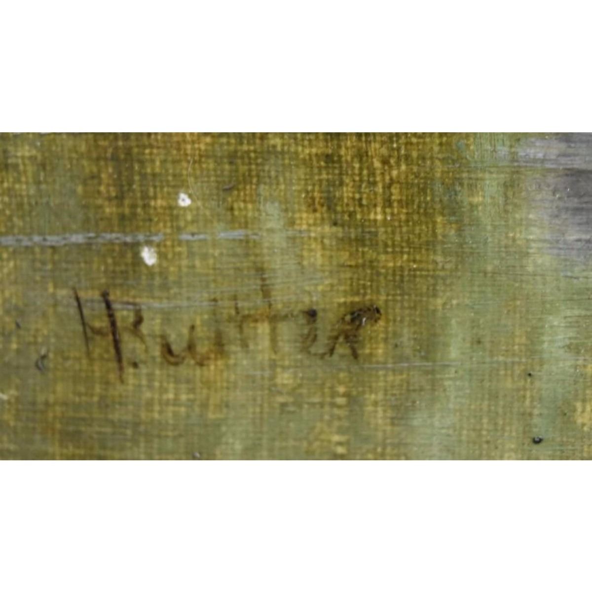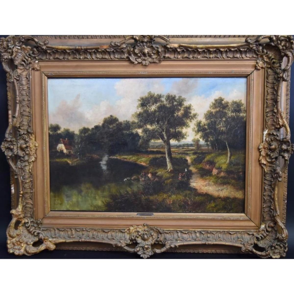 Oil on canvas. Woodland Scene by River. Signed l.l.; 20.5in. X 30in. Good condition - Old restoration