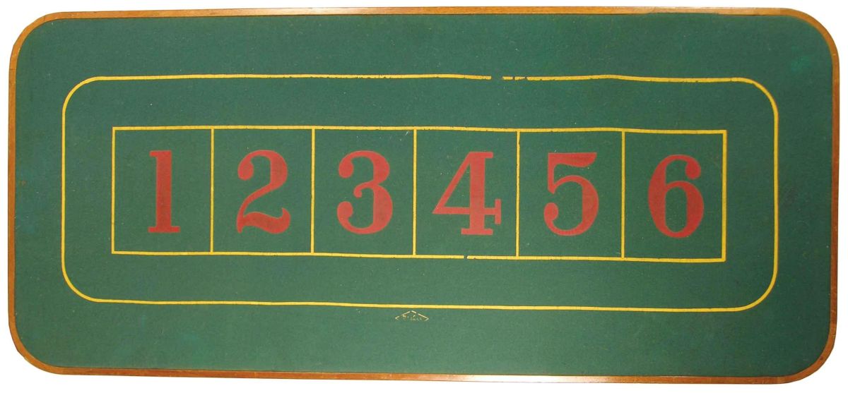 H. C. Evans Straight Big Six Layout, ca. 1910. Walnut frame. Very good condition. 41 1/4 X 18 1/2 inches.
