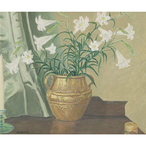 H.C.Mortensen (American, early 20th century), Still Life with an Urn of Flowers, c.1930;oil/canvas,25.5in. x 30in., signed.Mortensen worked in the Chicago area, and exhibited at the Art Institute of Chicago in 1927