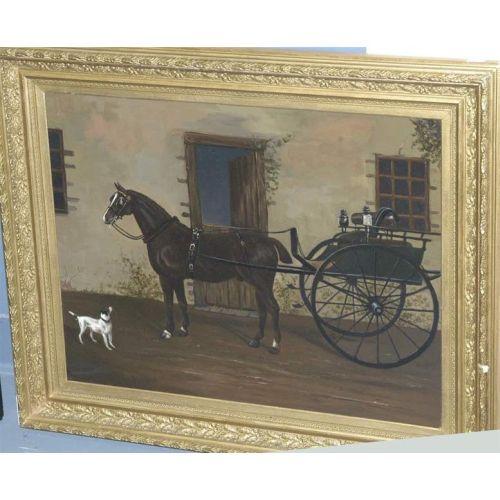 H.C. PARTRIDGE, 18"x23" oil on canvas, lined, Horse and Surrey, CONDITION REPORT: lined, otherwise good.