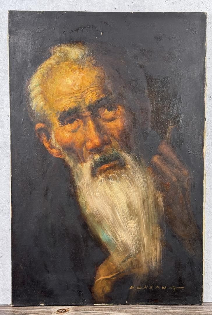 Title is Old Man. 20 1/2" by 30" unframed. Oil on Canvas. H. Cheang (Born 1910) was active/lived in Hong Kong. H Cheang is known for Painting.