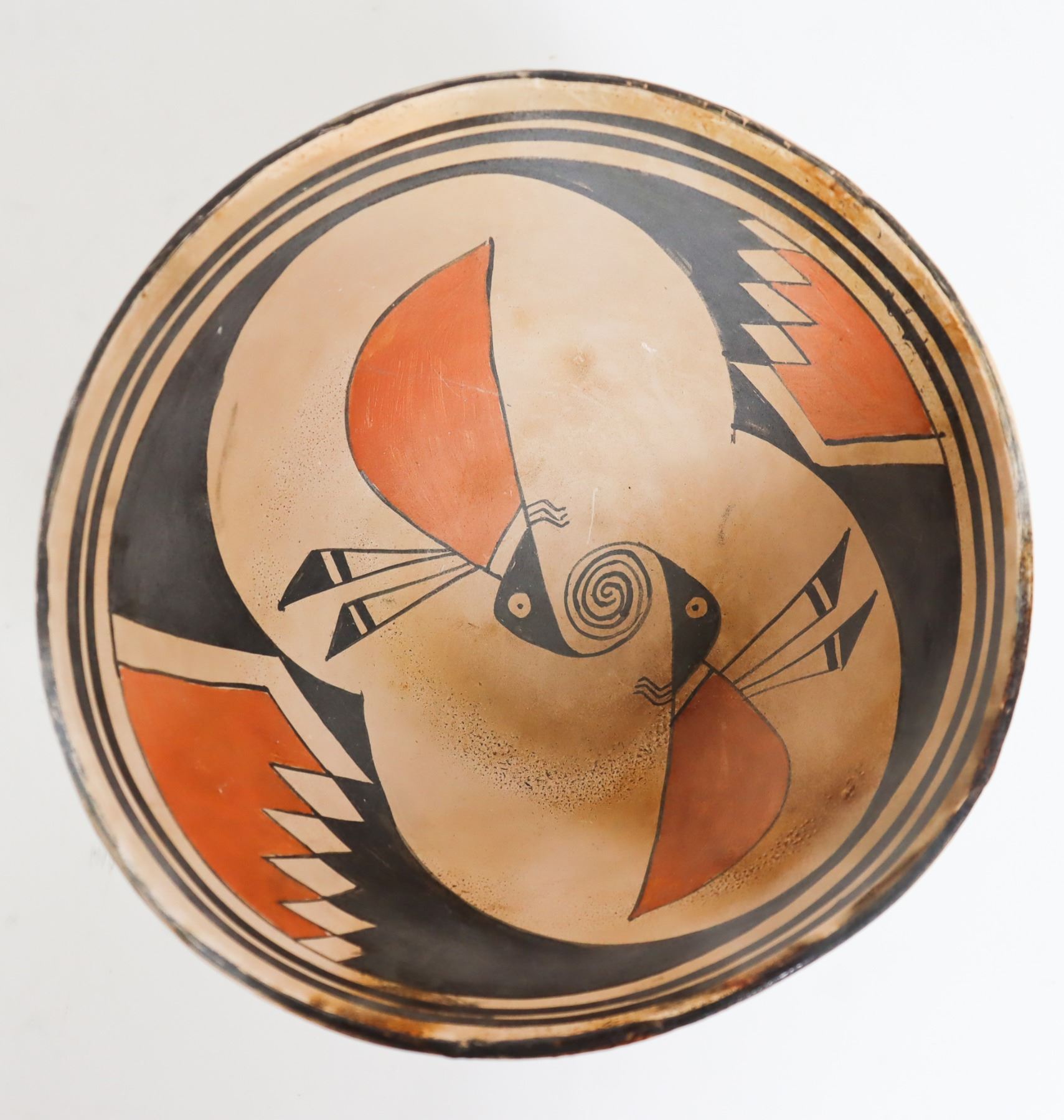 Southwest Indian polychrome vessel, titled and signed on bottom: Mimbres Bugs, H. Cordova 07 79.