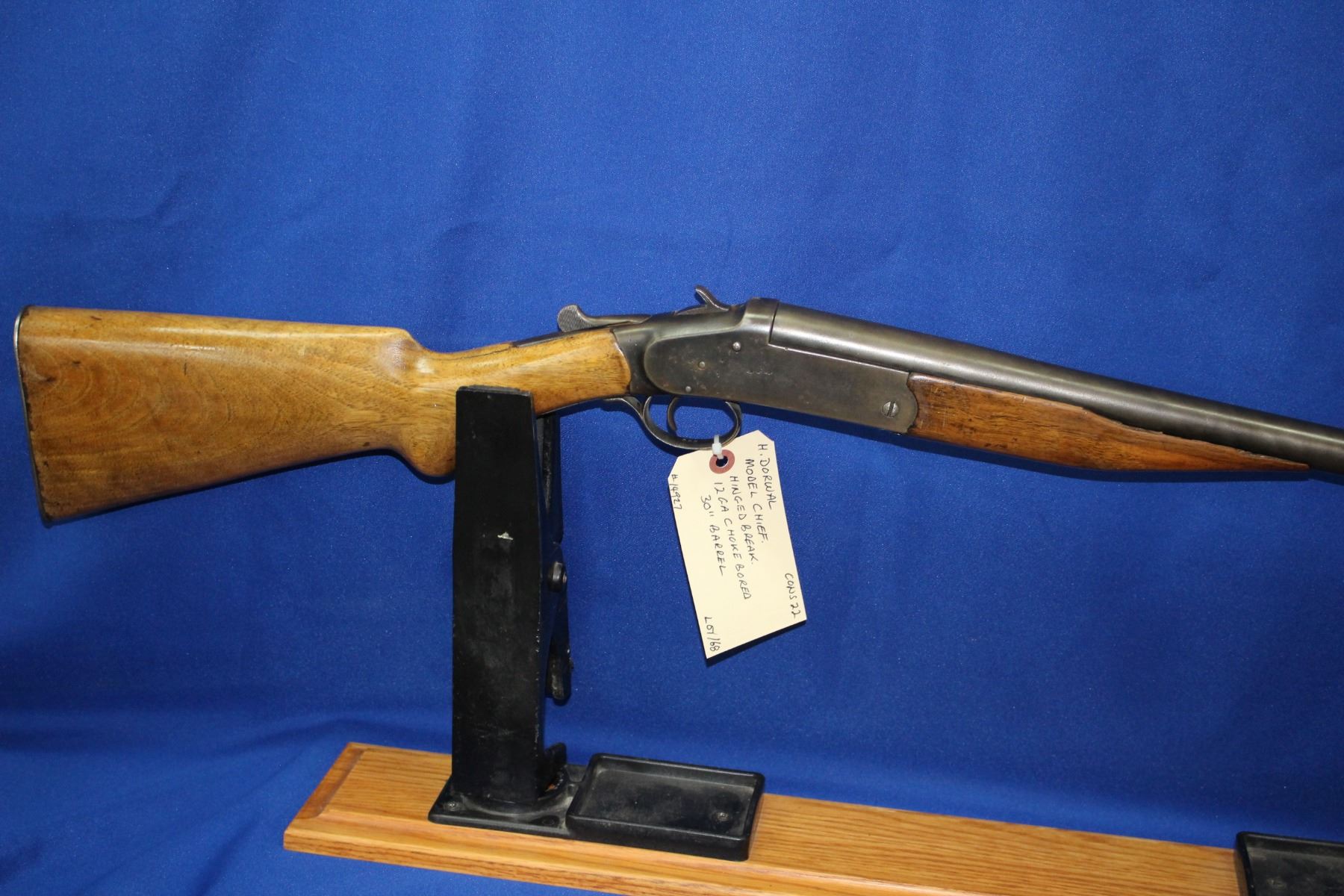 12 ga.; Hinged Break; Single Shot; Choke Bored; 30" Barrel; S/N 14927