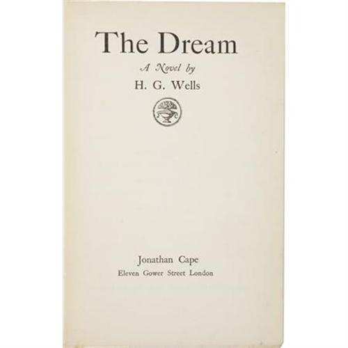 <B>H. G. Wells. </B></I><B><I>The Dream</B></I></B></I><B>.</B></I> London: Jonathan Cape, 1924.<BR> <BR>First edition with the notorious "lazy bookseller" line at the bottom of the author's catalog facing the half-title page. Octavo. 320 pages.<BR><BR>Publisher's original red cloth with titles in black on the spine and front board with black rules. Publisher's colophon in black on the rear board. Corners lightly bumped. Spine panel slightly darkened. General shelf wear to the extremities. Contents slightly toned, especially the preliminary pages. Handsome dust jacket with a few small closed tears along the edge, light shelf wear and toning to the light portions, especially the spine and rear panel. Chipping at the head of the spine. A very good copy. <I>From the Robert and Diane Yaspan Collection.</B></I><BR><BR><b>Shipping:</b> Books & Catalogs (<a target="_blank" href="http://www.heritageauctions.com/common/shipping.php">view shipping information</a>)