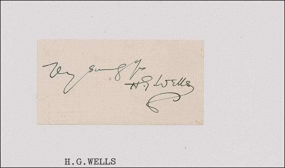 Ink signature and sentiment on an off-white 3 x 1.5 slip. Affixed to a 5 x 3 card. Vertical crease touching the start of his sentiment and a few spots of staining, otherwise fine condition.