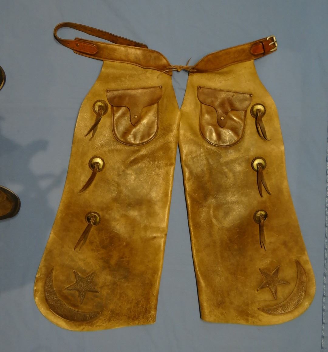 H. H. Heiser batwing chaps, outside pockets, conchos, nice