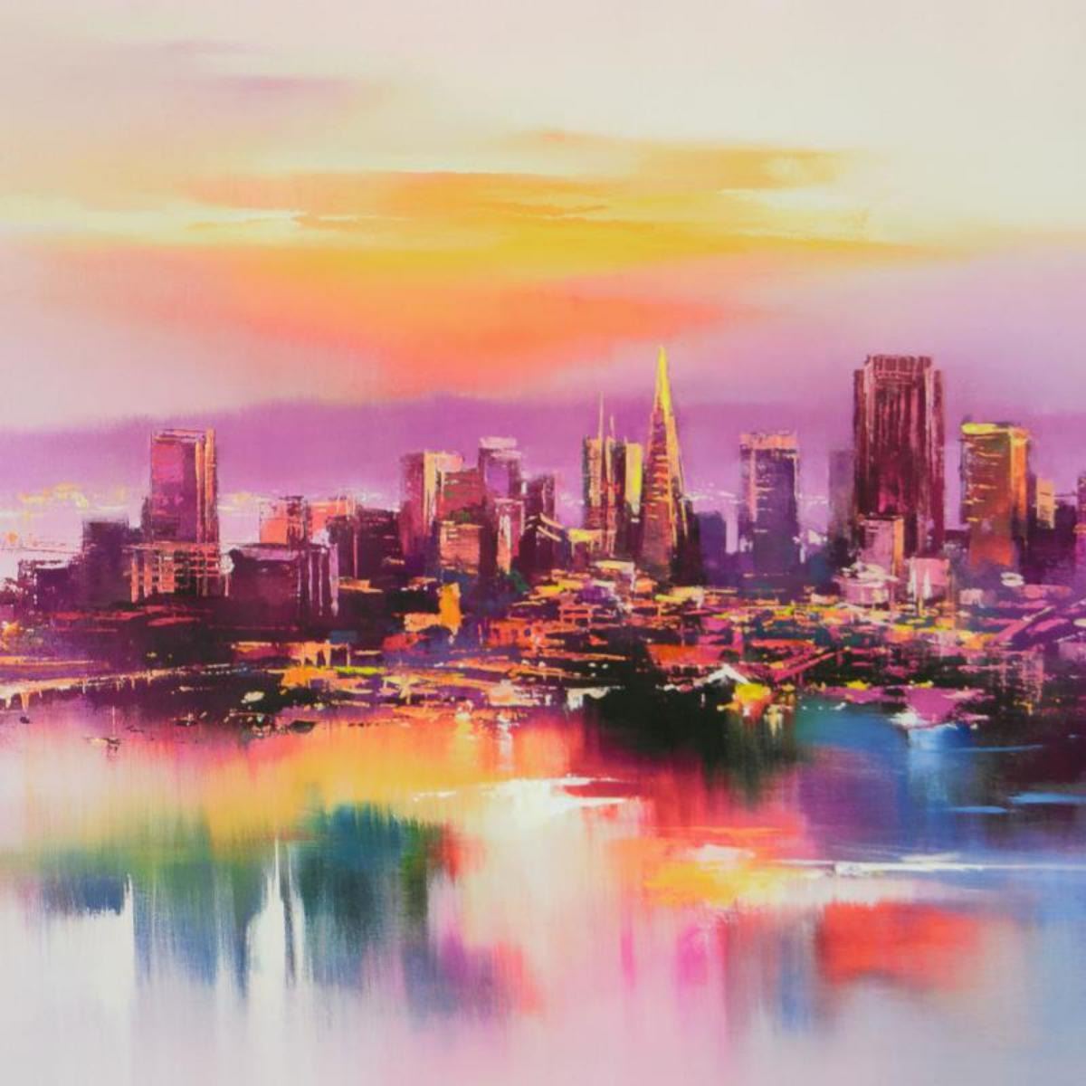 H. Leung, "San Francisco at Dusk" Limited Edition on Canvas, Numbered and Hand Signed with Letter of